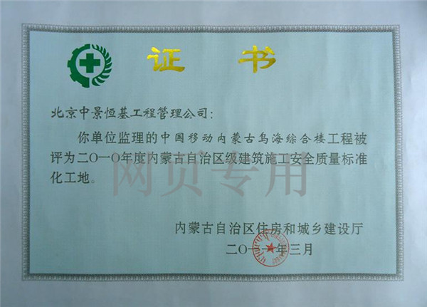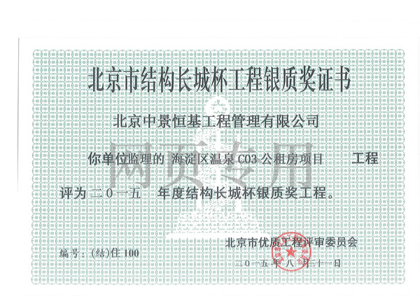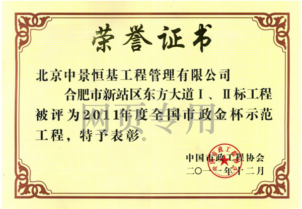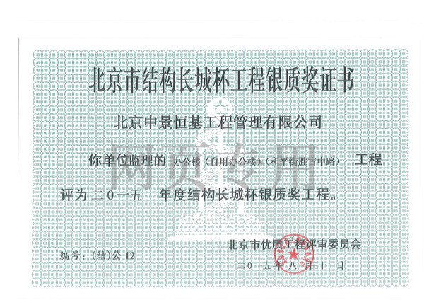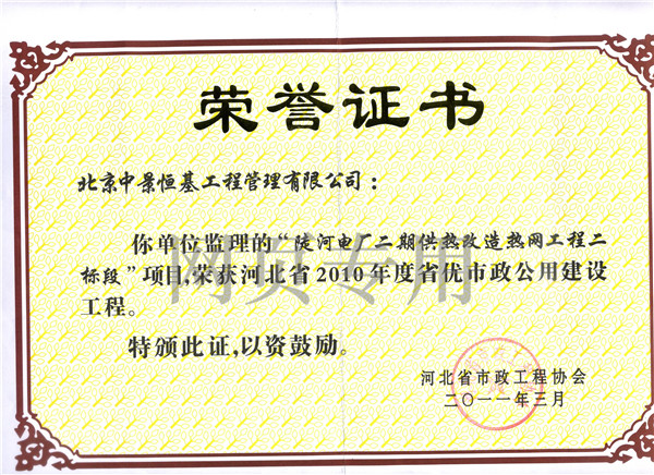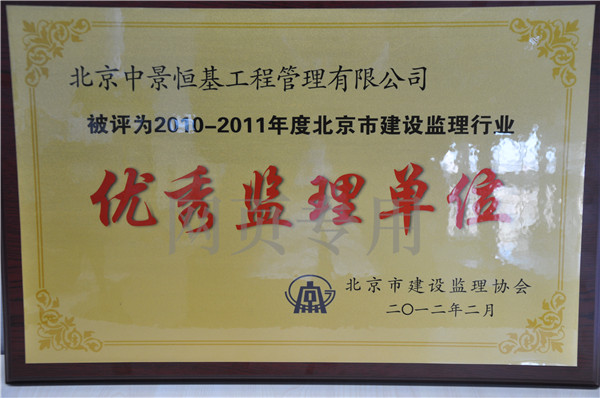 2010-2011年度優(yōu)秀監(jiān)理單位證書