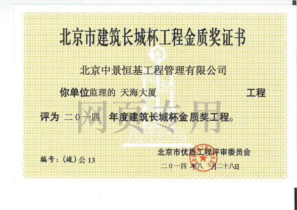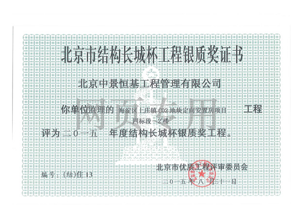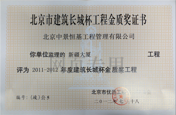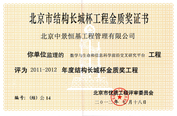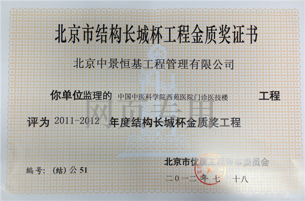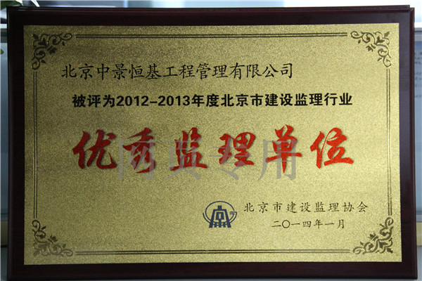 2012-2013年優(yōu)秀監(jiān)理單位獎牌