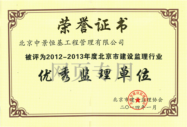 2012-2013年度優(yōu)秀監(jiān)理單位證書